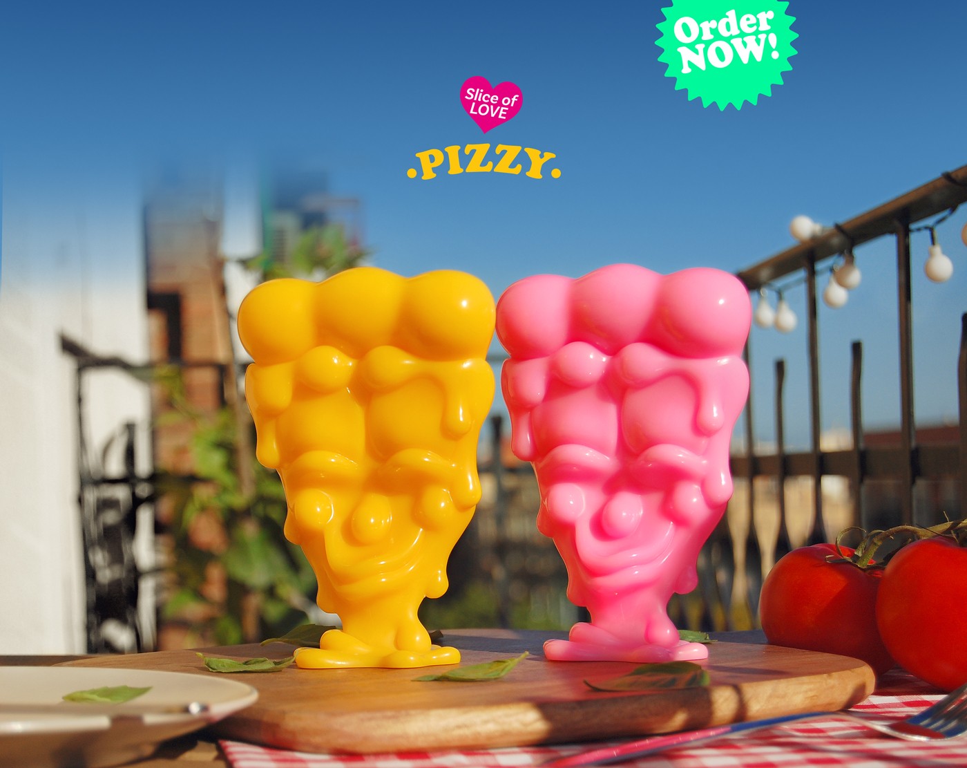 Pizza is more than food, it's an icon of our pop culture. Pizzy is an Art Toy tribute to the pizza. Size: 16cm Material: polyurethane resin Colors: Gummy Pink / Cheedar Yellow / CeramicWhite Limited Edition of 22 copies. (Available in my shop)